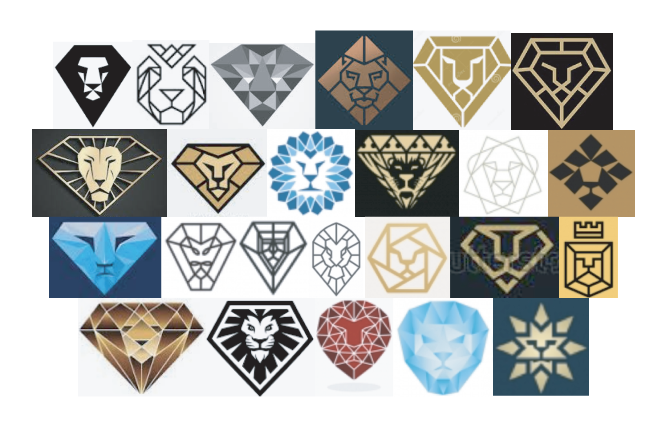 I researched existing geometric lion logos and found there was room for improvement. I could design a logo that looked like both a faceted diamond and a lion equally. It would work in color and black and white to make printing cheaper.